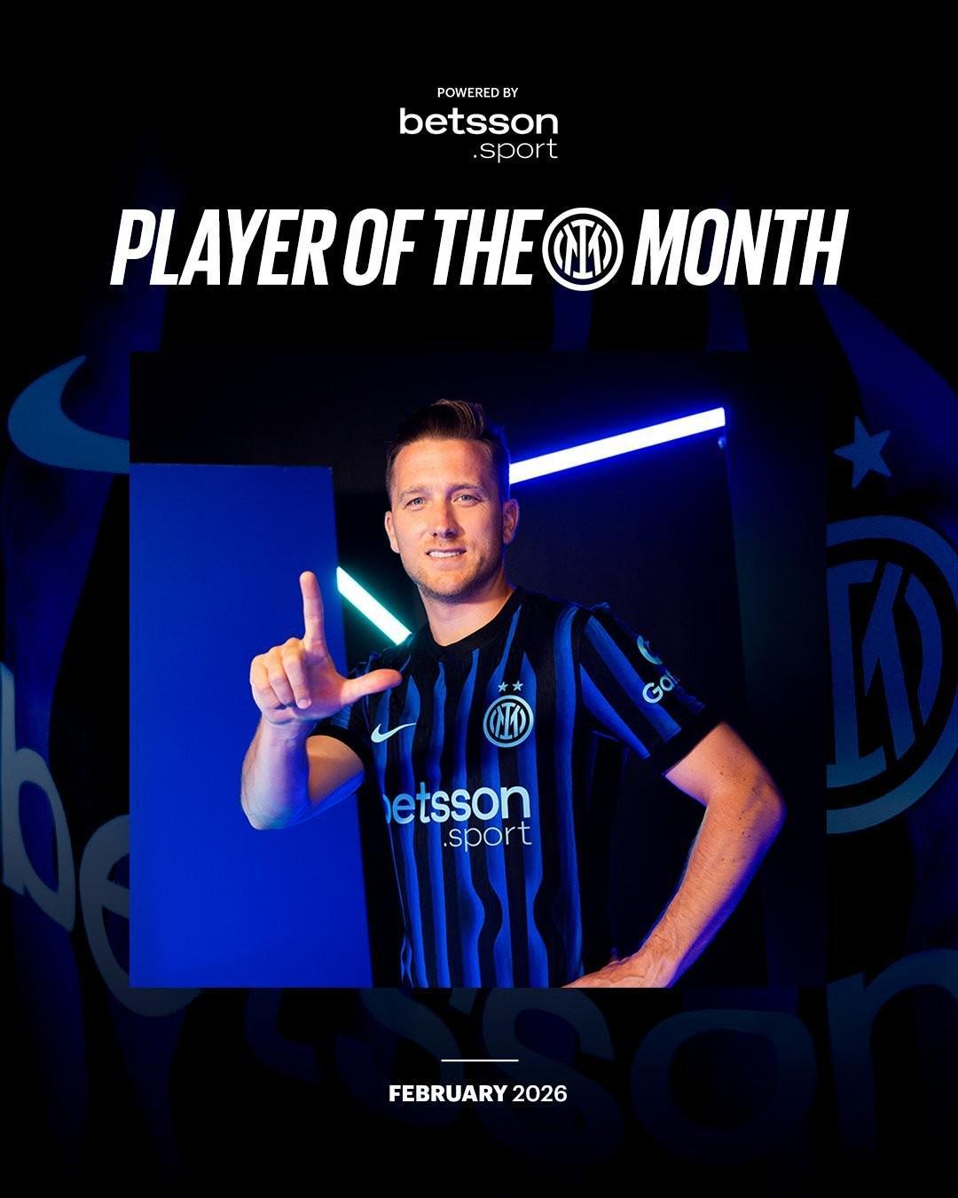 北京时间3月5日,国际米兰官方消息,中场球员泽林斯基当选国米2月最佳球员。